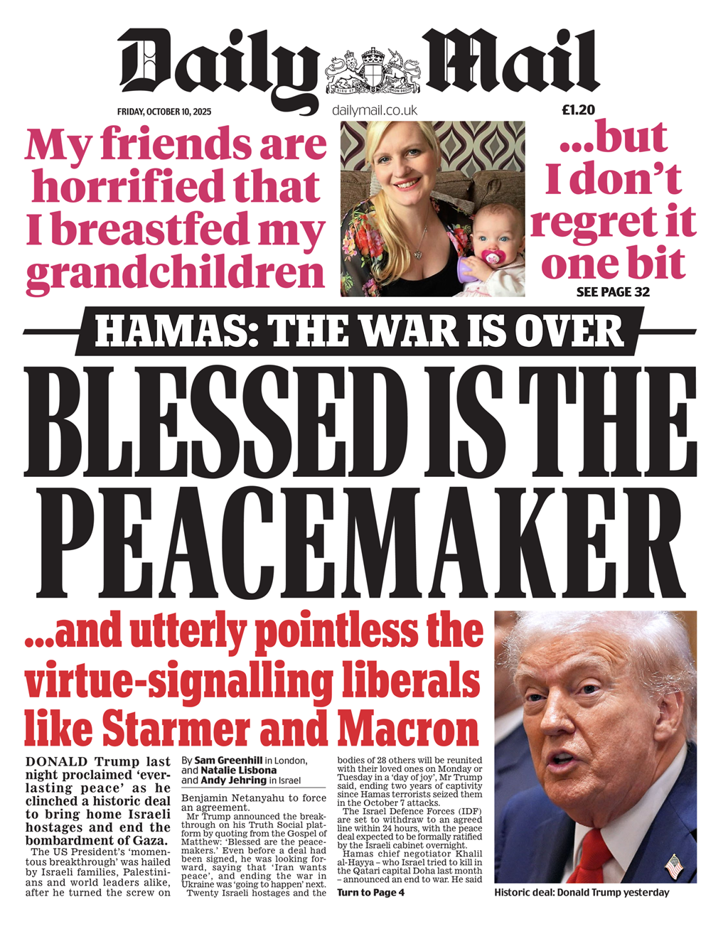 If this works then it's an incredible achievement for Trump. I'm sure it will get due credit from all those who have been marching for Palestine the last two years