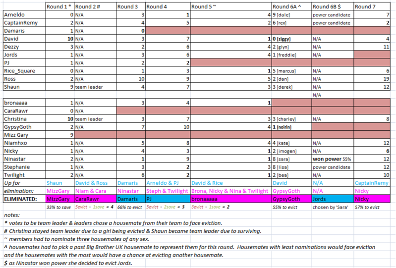 Comiserations Nicky! This now means there is 5 girls to the 7 guys!! CaptainRemy: 6 Nicky: 8 ------------------------------------- Nomination details will be up shortly. |