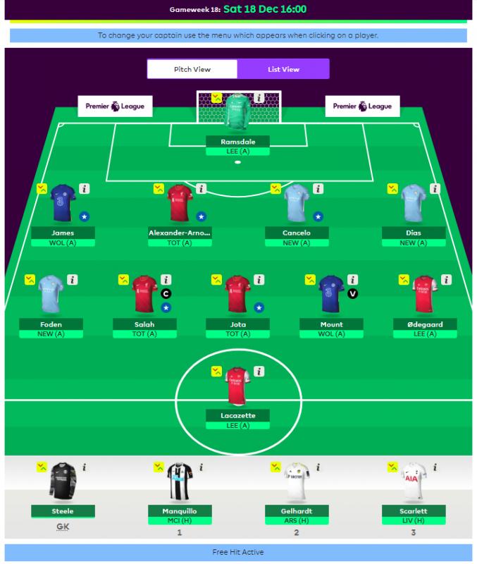 4 transfers — 12 points I’m confident despite 9 out of 11 playing away this weekend ![]() ![]() Sent from my iPhone using Tapatalk Pro Last edited by Zizu; 18-12-2021 at 12:33 PM. |