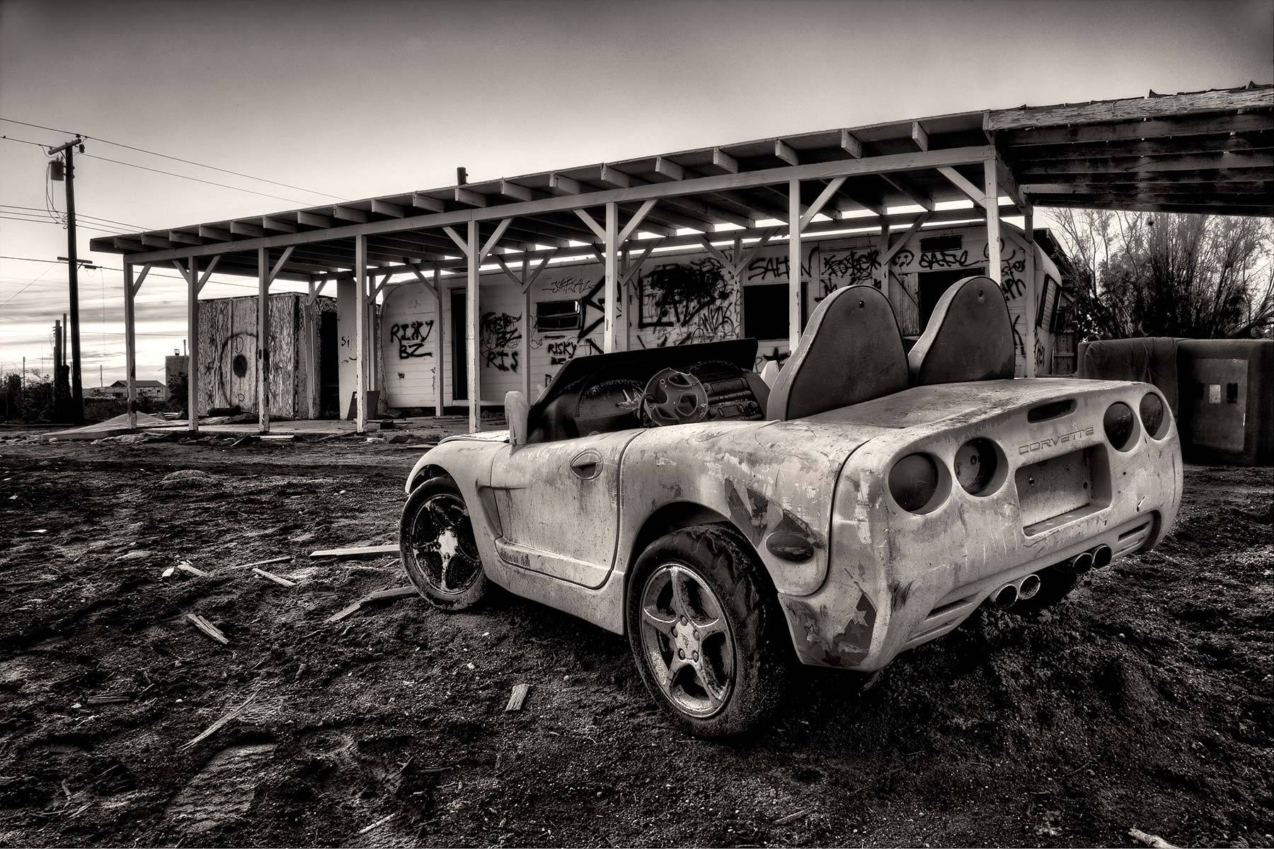 The Salton Sea is one of the most enigmatic places in the Southwest–an otherworldly lake in the barren, naked desert, sandwiched between the resorts of Palm Springs and the Mexican border. Its languid surface, at 228 feet below sea level, is only five feet higher than the lowest point in Death Valley. This former resort region had its heyday during the early 1960’s, when it was a bustling place filled with weekend revelers from the nearby Los Angeles and San Diego metropolitan areas. For a time, the Sea was a haven for boaters and fishermen. Today, the few people who remain are hardy individualist types looking for isolation and a cheap place to live. The air is heavy with heat and decay. It’s a lonely, haunted place.