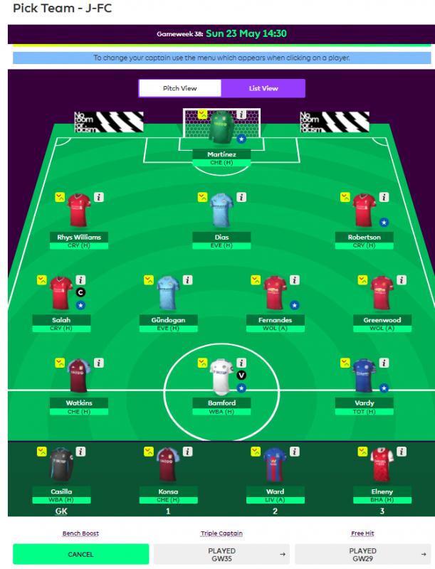 Bench Boost used. Salah captain, Bamford vice captain. What did everyone else do? Last edited by Calderyon; 23-05-2021 at 01:44 PM. |