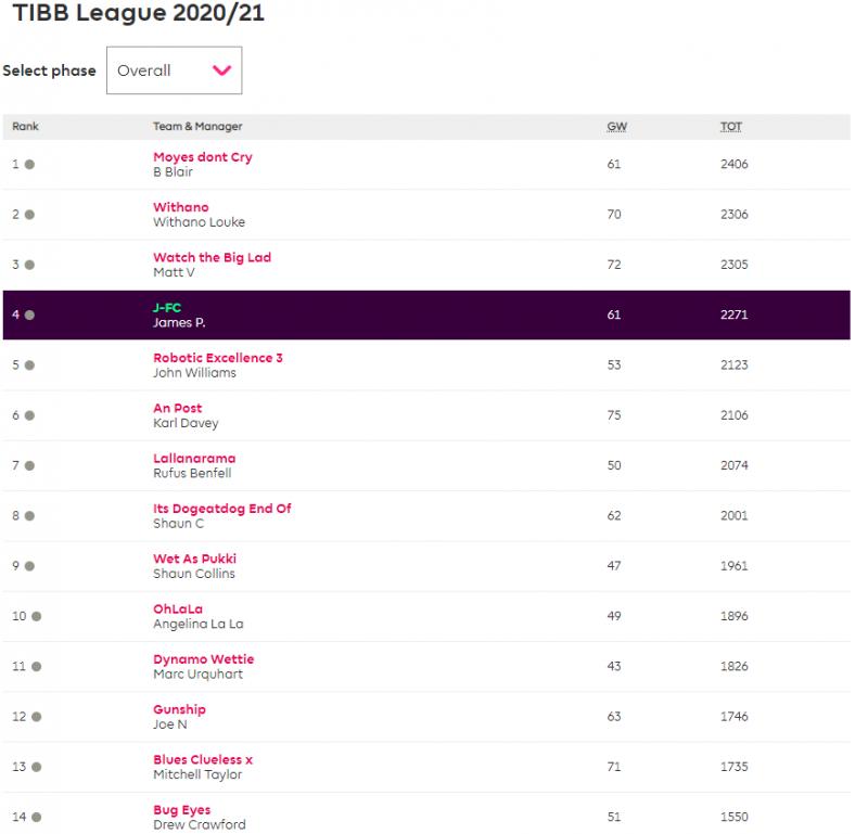 I wasn't even thinking about him either, thought it was between me and James for second and then Withano has a couple of massive weeks in a row