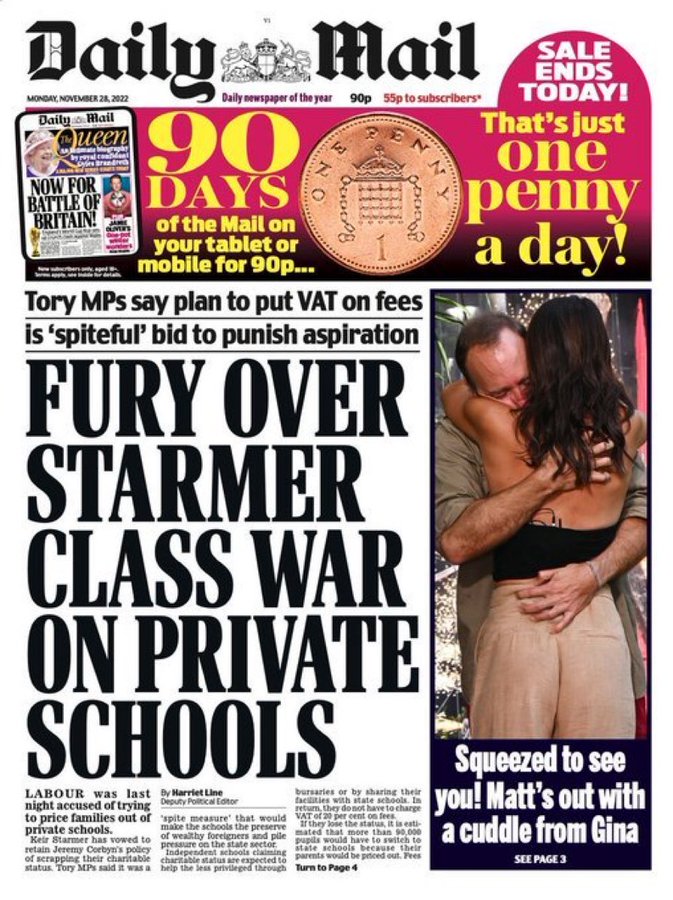 do the tories really think that fighting to keep elitist private schools during a cost of living crisis is a vote winner? It shows how out of touch they are