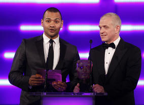 Presenting the award for Best British Band are Michael Underwood and Martyn Gibbs ![]() ![]() ![]() ![]() ![]() ![]() The nominees are... ![]() ![]() ![]() ![]() ![]() Snow Patrol - Coldplay - Yuck - Metronomy - Noah and the Whale and the winners, with 40% of your votes, are...