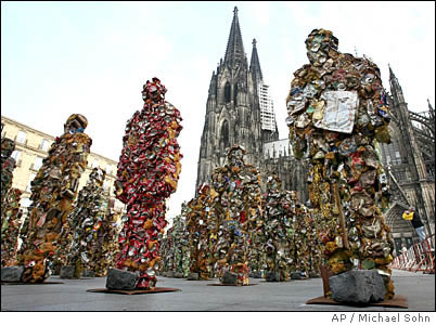 Hans-Jürgen Schult’s, known as HA Schult is a conceptual artist who often uses trash to create his art. In 1996 he created an art installation titled Trash People where he constructed one thousand life size ‘people’ made from crushed cans, electronic waste and other refuse from human consumption.
