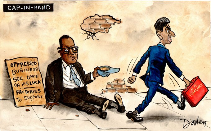 for hard-hit firms after Cabinet row despite Rishi Sunak's objections Prime Minister sides with Business Secretary Kwasi Kwarteng in his spat with Chancellor Rishi Sunak over extra funds Bail-out worth hundreds of millions of pounds to affect industries including steel, chemicals, ceramics and paper It is reported that the support will most likely come in the form of loans, rather than handouts] https://www.dailymail.co.uk/news/art...hit-firms.html |