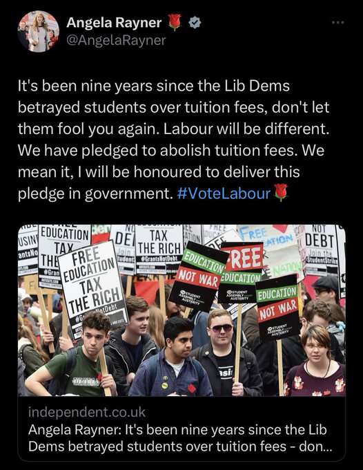 I'm pretty stunned on the tuition fees turnaround. I'm not like Slim YET, however I'm seeing more and more what Slim is saying. Sorry Slim for some reason this wouldn't double quote. I've now heard from 4 leading figures in Labour, including Thornberry today on Politics live. The message that if Labour wins they are going to inherit a really big mess. I'm almost on the road of thinking Starmer maybe doesnt relish winning the next election. So hoping to drastically cut the Cons majority to a very small one or take it to a hung parliament even. I am scratching my head at this point. I'm not the only one either. I'm NOT happy at the tuition fees change. Not at all It was a very important issue for me in 2010. I'll see what he comes up with instead of it but for me it's a really bad and wrong move he's done on them at this moment in time. Last edited by joeysteele; 03-05-2023 at 03:49 PM. |