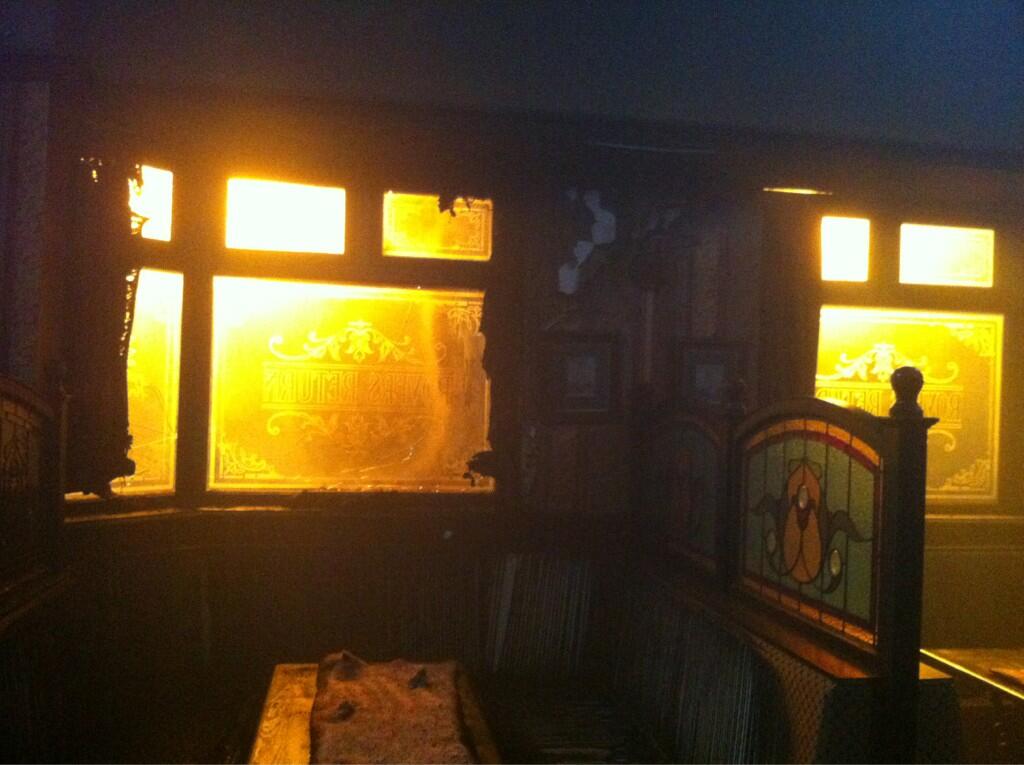 Then tonight he walks around the corner with Tina and is shocked to discover the Rovers is on fire.