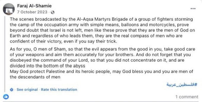 Also Jihad's father: ![]() ----- ylon Levy @EylonALevy · 3h The father of the Manchester Synagogue terrorist, who named his son Jihad, posted this during Hamas’ October 7 Massacre. ![]() |