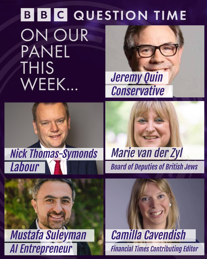 iPlayer never worked. At 8PM or after that So I had to record it. Two Presenters spoke first. Sonia Sodha was replaced by a Proper Muslim. Allowing questions on people of Gaza means this was edited alot. This QT iPlayer now works (After they Edited bits out) https://www.bbc.co.uk/iplayer/episod...-2023-12102023 Last edited by arista; 13-10-2023 at 12:02 AM. |