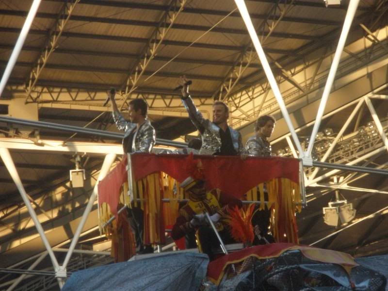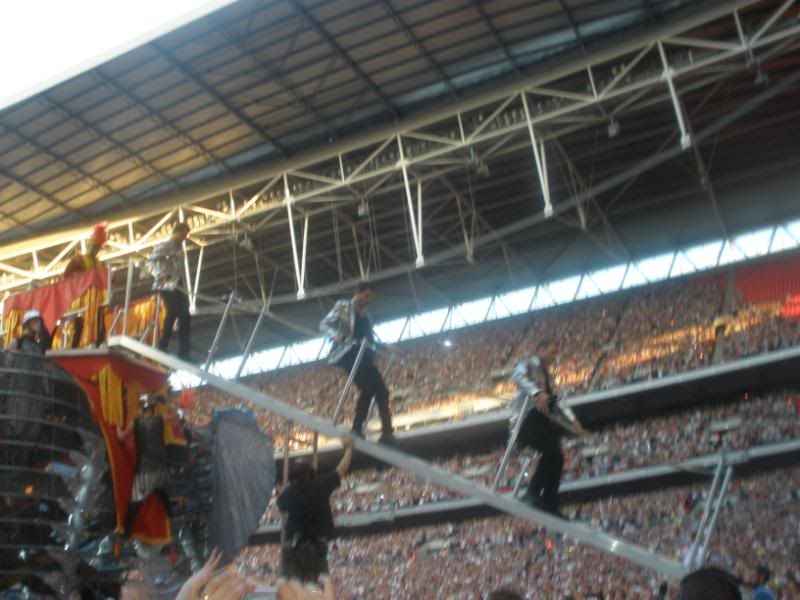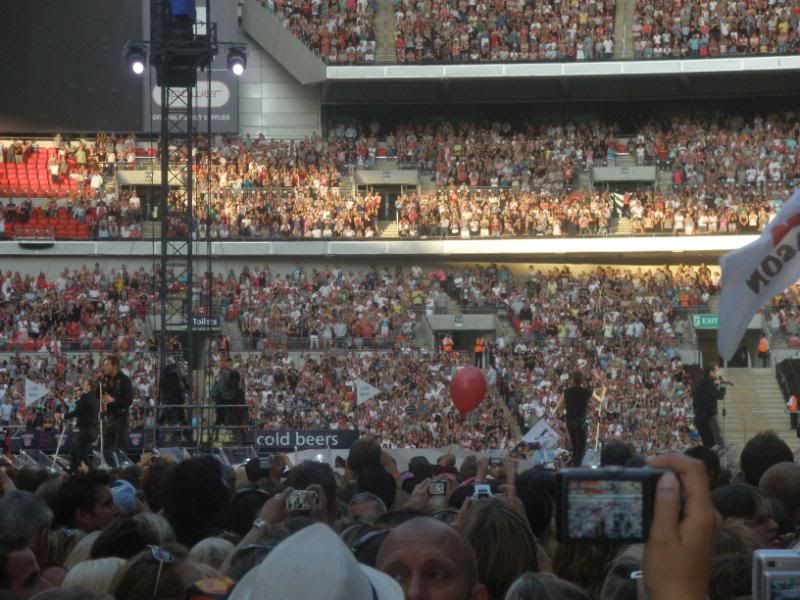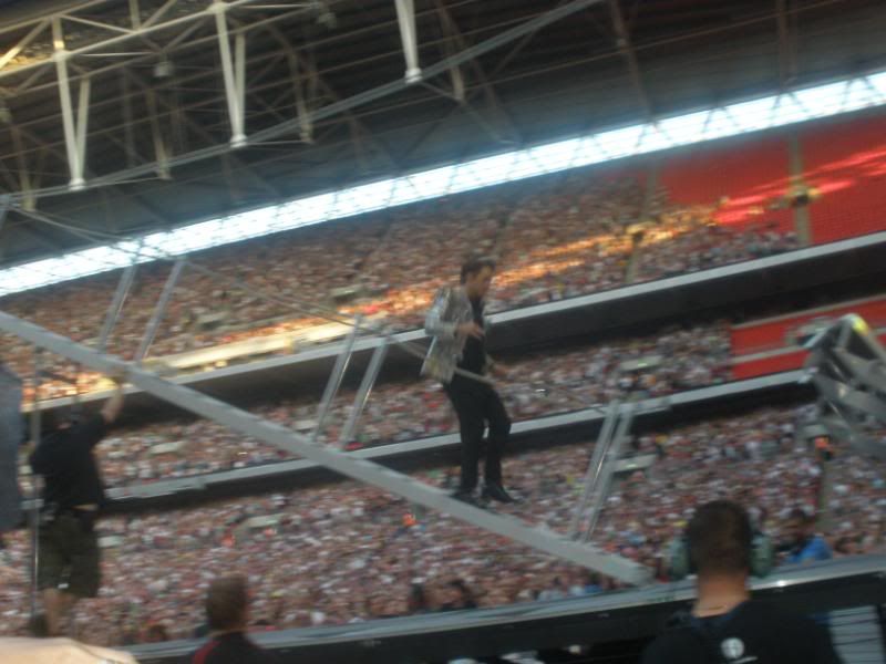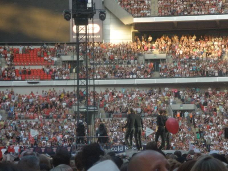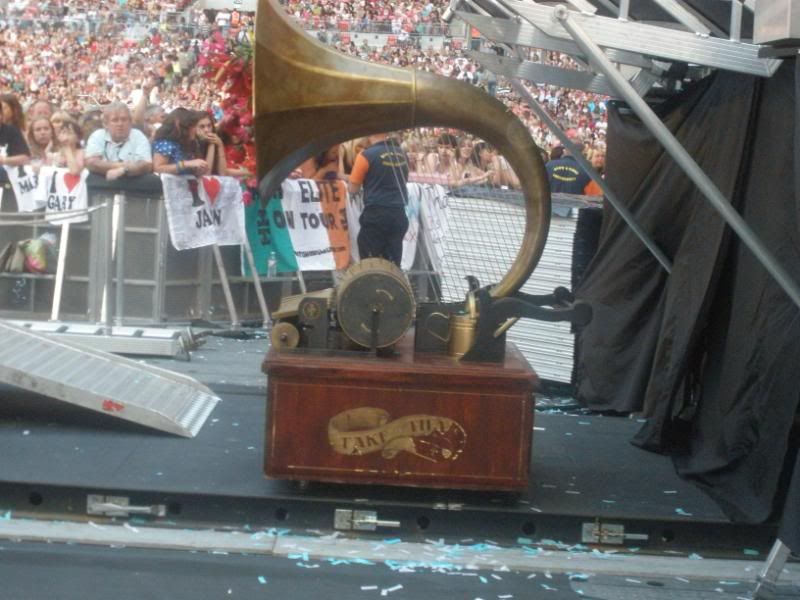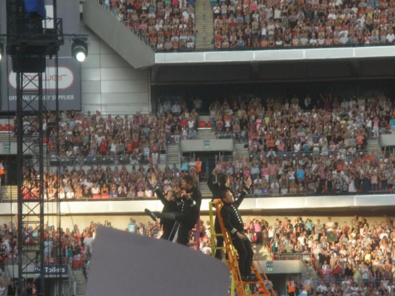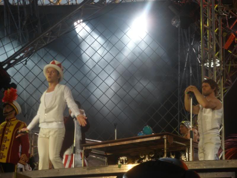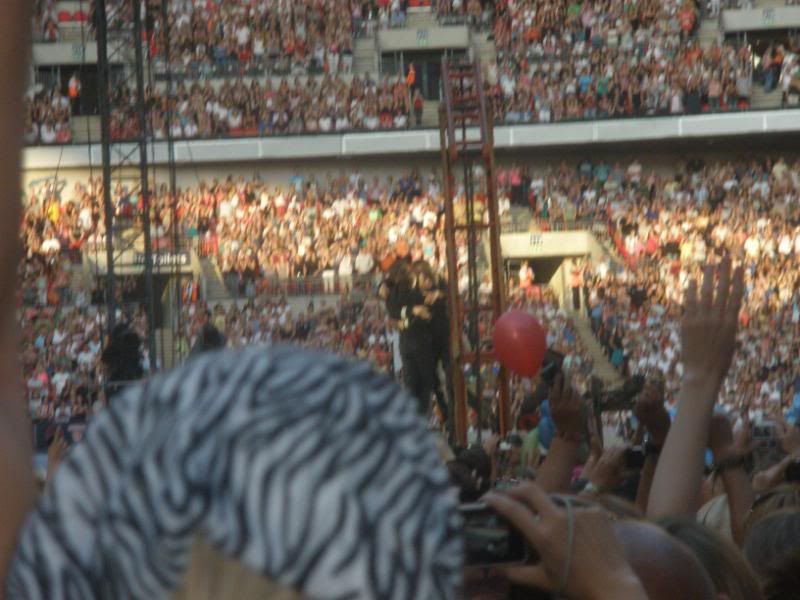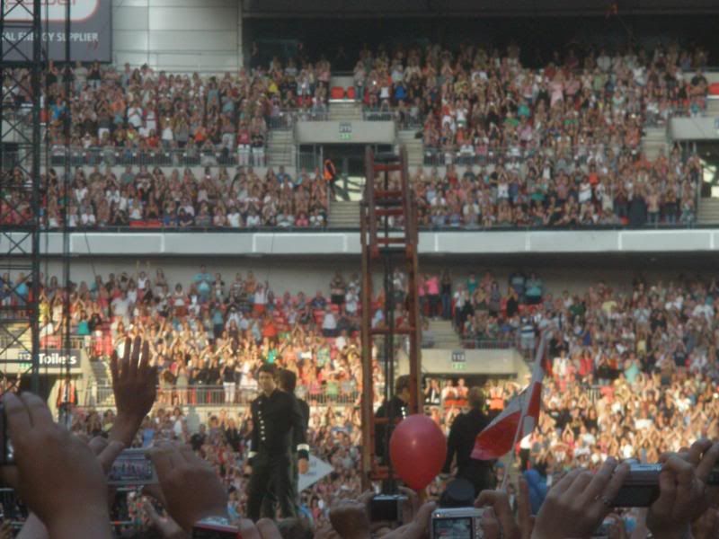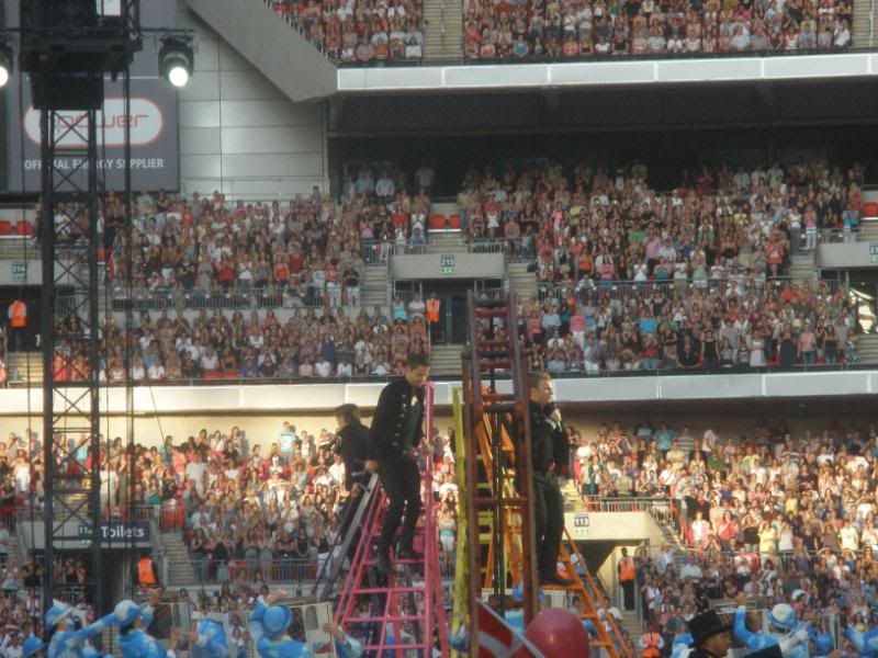 5th July My last day, how surreal it was. After stocking up on my queuing food the night before I set my alarm for 6.55am. I arrived at Wembley at 8 and got into the first pen! After a while I chatted to some people. At 9ish this girl I had met the day before in the crowd came up to me and said hello and that she was going by herself after having bought one after the show the night before-I had a queuing friend,yay! Whose name was also Laura and she loved Mark, woop. The day flew by, with the music coming on about half 12. The 2 girls next to us had speakers and were playing TT and Mark music which everyone appreciated. Laura had brought a pillow with her which when she went to the toilet and off to buy food I have 2 half hours naps on-heaven! Weirdest place I’ve ever fallen asleep, lol! I also made a banner saying ‘Happy Birthday Jason (In 5 Days!)’ which Laura helped me colour in. Soon enough, it was time for the running and I was feeling sick. They had squished up all up by then and some rude people had tried to get in front of us so we elbowed them back! Laura was running for the B-Stage and I was going for main so we said bye and good luck before the mania began. They moved us to another area and loads of people got in front of me, one poor girl lots her flip-flops! Poor thing had absolutely never done this before; flip-flops are the worst possible running shoes in the world. After the turnstile and the bag search I got to the stairs and saw that front row was EMPTY. I ‘walked quickly’ and got a spot right in front of the stage! It was a bit up (the good up) from where I had been in Dublin; it was as if I had come full circle. I had wanted the other side havn’t not been on that side yet but it was too long and too risky and Mark was always on the side I had! A few seconds later, who was to turn up right next to me but the Irish Thatters I knew from Dublin! The girl next to me, Tara was lovely and we were all nattering away. I found out from her, the reason that front row was empty is because they opened our gate before anyone else’s-brilliance! The one annoying thing was everyone around me was foreign and didn’t speak much English so whenever Tara was chatting to someone else, I was all alone, boooo. I chatted to the security guards; most of them recognised me from the day before, haha! One guy-Paul said he loved the Irish and befriended us lot. He said we were the best fans he had ever met-woop! Another one said Take That fans were the most dedicated. The usual ad’s and songs were on. There is one ad for Durex where there is an opera song played on it and all the Irish Thatters were singing along everytime it was on-brilliant! There was also a Chris Moyles ad for the TT show and the last Hey Jude singsong ![]() The ringmaster appeared and introduced Gary Go, I pretty much knew the intro off by heart at this rate! The security guards were as fed up with him as we were, lol! The girls next me had an ‘Irish Elite’ flag and there was another lot of them on the other side as well as my lil one on my Jay banner-the Irish were dominating front row! They were waving like mad at Gary Go and we got a wave, yay! I think he recognised us too. Lady GaGa came a little while later and credit to her did a different set than the day before. As the show was started earlier than usual as it was last night, the clowns soon appeared. I also saw Chris Vaughn (who I went HELLO to only to receive a strange look back, lol!)Kim Gavin, James and Paul and Skippy dressed as a clown! Oh yes clowns. They walked near us and after much persuasion I got a balloon off one! He then said (when he spoke it freaked me out, haha) ‘When you see Take That’ and I went ‘let it go’ to which he nodded. Soon enough another clown appeared and it was Ciaran! One of the dancers, whose been there since the comeback. I went to him ‘You’re a dancer not a clown’ to which he just smiled and nodded, lol! He seemed to like us since we were all Irish! Soon the intro started and I was nearly crying before it even begun! When the balloons were let go by the clowns on stage, I let mine go. I looked up into the sky as I heard Gary sing ‘Ooohhh’ and all I could see was color. It was beautiful, I shed a little tear! And then they began to sing and the crowd did too. All the girls around me looked as upset as I was feeling! Gary said ‘It’s our last night’ and we all cheered. Whenever I listen to GD now all I can hear is ‘Today this could be the greatest day of our lifes’ SING then the crowd singing and Markie going ‘I wanna see your arms in the air!’ I also love how everyone does the ‘Hold On’ arms for Greatest Day. And the guys hugging-aww! Then the boys did their usual ‘I’m Gary I’m etc We’re Take That’ woop. Then there was Hello with the ladders and the waving and the guys going into around the B-Stage crowd-jealousness. Could it be Magic had everyone dancing-the Italian trio in front of me (when I turned around to see the B-Stage ![]() Mike Stevens and Jamie Norton came on for A Million Love Songs. Everyone was swaying and singing and I even cried a little! Emotional night. Jay then said ‘Oh we have to leave this stage’ soon which caused loud cheering from our end and boo’s from the B-Stage. Jay went ‘Why do I always get the bad lines fellas, eh? We’ll have to sort this script out’ and I was like ‘You can’t, last night, argh!’ Back for Good had us all waving our arms and singing as the poor B-Stage lot got soaked. I adore when Gaz says ‘Let it Rain!’ The Garden and the elephant were next which meant they were coming our way! As they were right above us, we were waving and screaming like fricking maniac’s and they waved back, woop! As they went down under the stage, Mark stayed for a second and said ‘Do you mind if I just enjoy this for a minute’ before ‘Ladies and gentlemen are you ready to run away to The Circus’ before he went too. Bless him