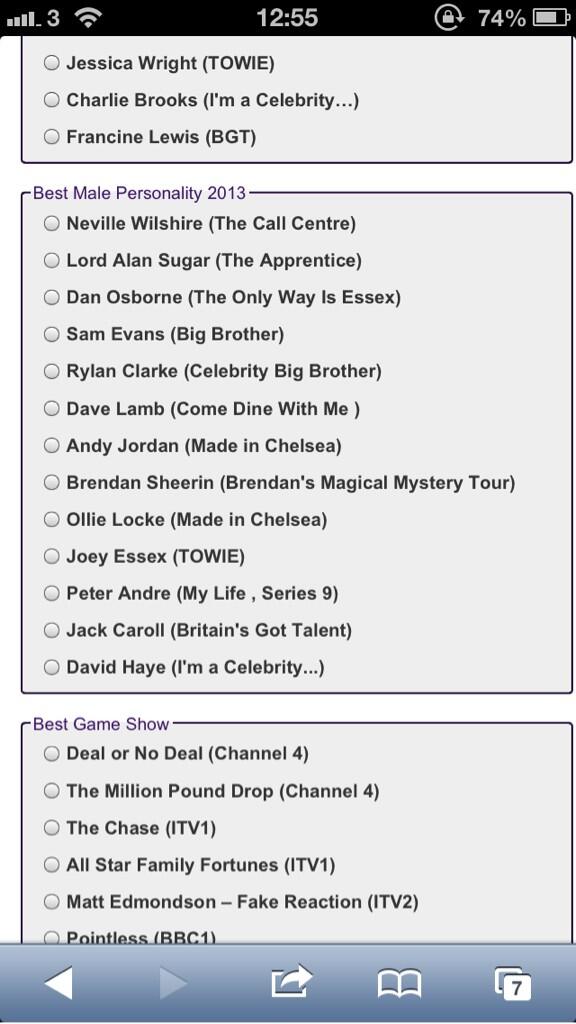![]() Not sure if this is a wind up, or if him sleeping and staying silent counts as 'having a personality'. I guess the winner is already decided. No other housemate from this year is nominated for an award.