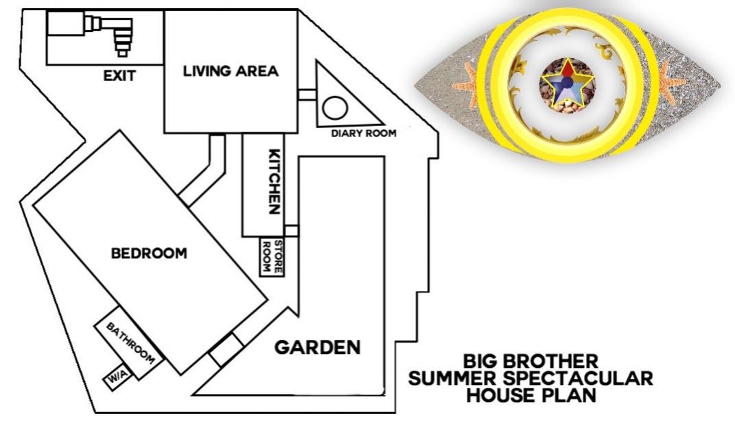 the house plan has been drastically changed for this series. The living area has been made smaller in size, with less of an open plan house for the first time in a while. the kitchen will be a very small area, with room for a few housemates at a time. the store room will also be small and will be hard for housemates to store some food. There is now a hallway in between the living room and the bedroom, which could serve as a good place for the housemates to have a chat. however, some of the walls can change colours, so could confuse housemates. The bedroom is very big, and it will have a circular bath in the middle, so in case a housemate wants a bath late at night, they will have to bathe in front of the other housemates. The bathroom has dramastically reduced in size, due to the bath in the bedroom. The toilet will be in the bathroom, and their will not be a camera. Two doors connect the garden to the house. You can get to the garden from the bedroom or the kitchen. The garden is very spacious this season to keep the theme of sun and summer running. The spacious area will be used as the small and large task rooms, and the size of the garden will make the housemates enjoy the summer more. The diary room is just off the living area, and has a small hallway between the doors. that is the house plan. comment criticism below!