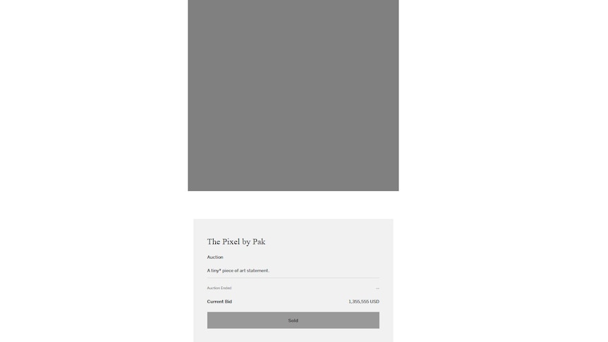 An online sale of a single pixel, as a part of non-fungible tokens (NFTs) by the digital artist Pak, sold for $US1.36 million ($1.76 million) at auction house Sotheby's.