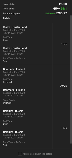 I've done my first fiver for today's 3 games, will probably do a fiver here and there, or ten if im confident enough. Today's bet (it's out there, but it's just a bit of fun)