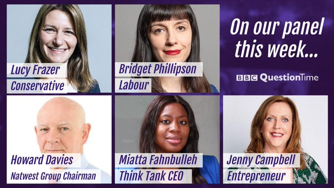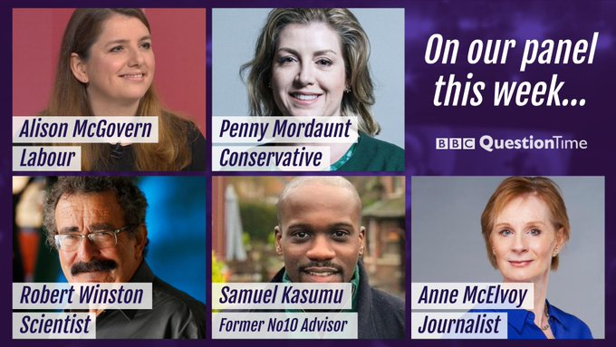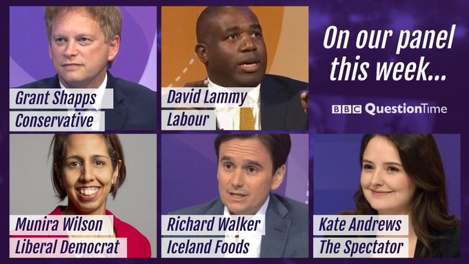 was on GMBHD itv Live confirmed they back and are in Croydon with a limited audience. And Andrew Neil is on the panel Had to make yet another thread to Edit and add to the title. https://twitter.com/bbcquestiontime Last edited by arista; 21-09-2022 at 06:28 PM. |