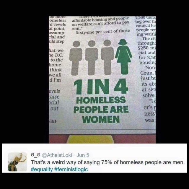 It's a similar situation with homeless women. Online discourse around this sort of thing sucks: