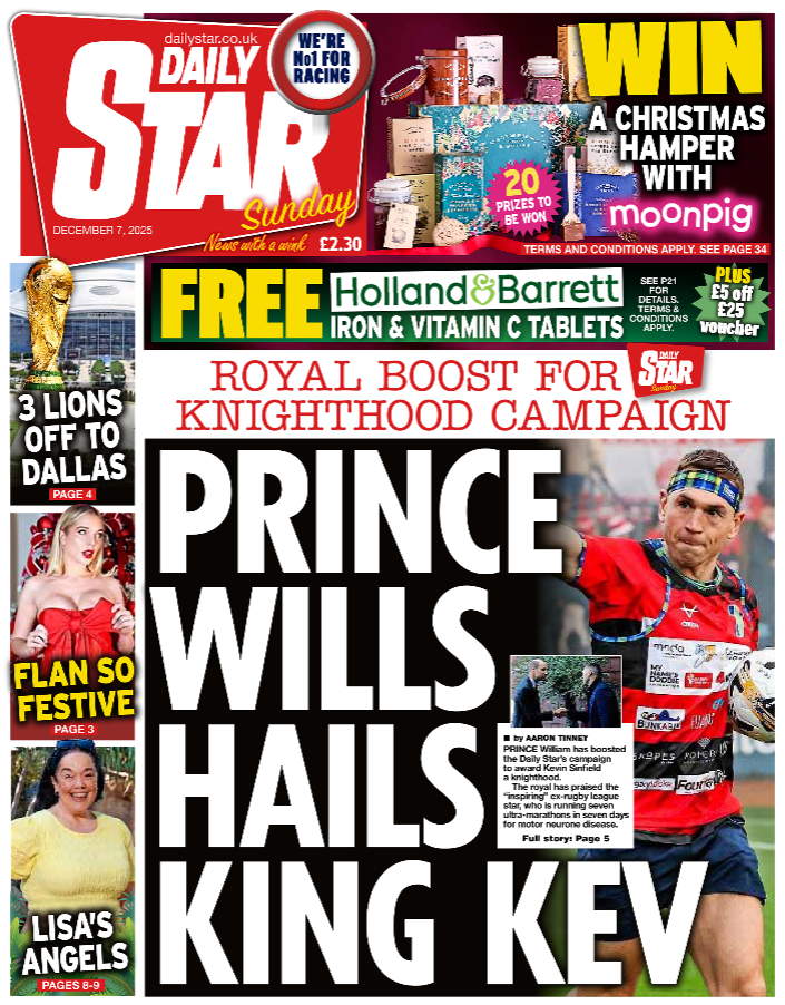 [A Daily Star campaign aimed to get Kevin Sinfield (rugby player) a knighthood has received royal backing, the paper states.] Sky News stated Kevin does a Great deal to help Raising money for motor neurone disease treatment and research. https://www.bbc.co.uk/news/articles/cre3vdqvg05o