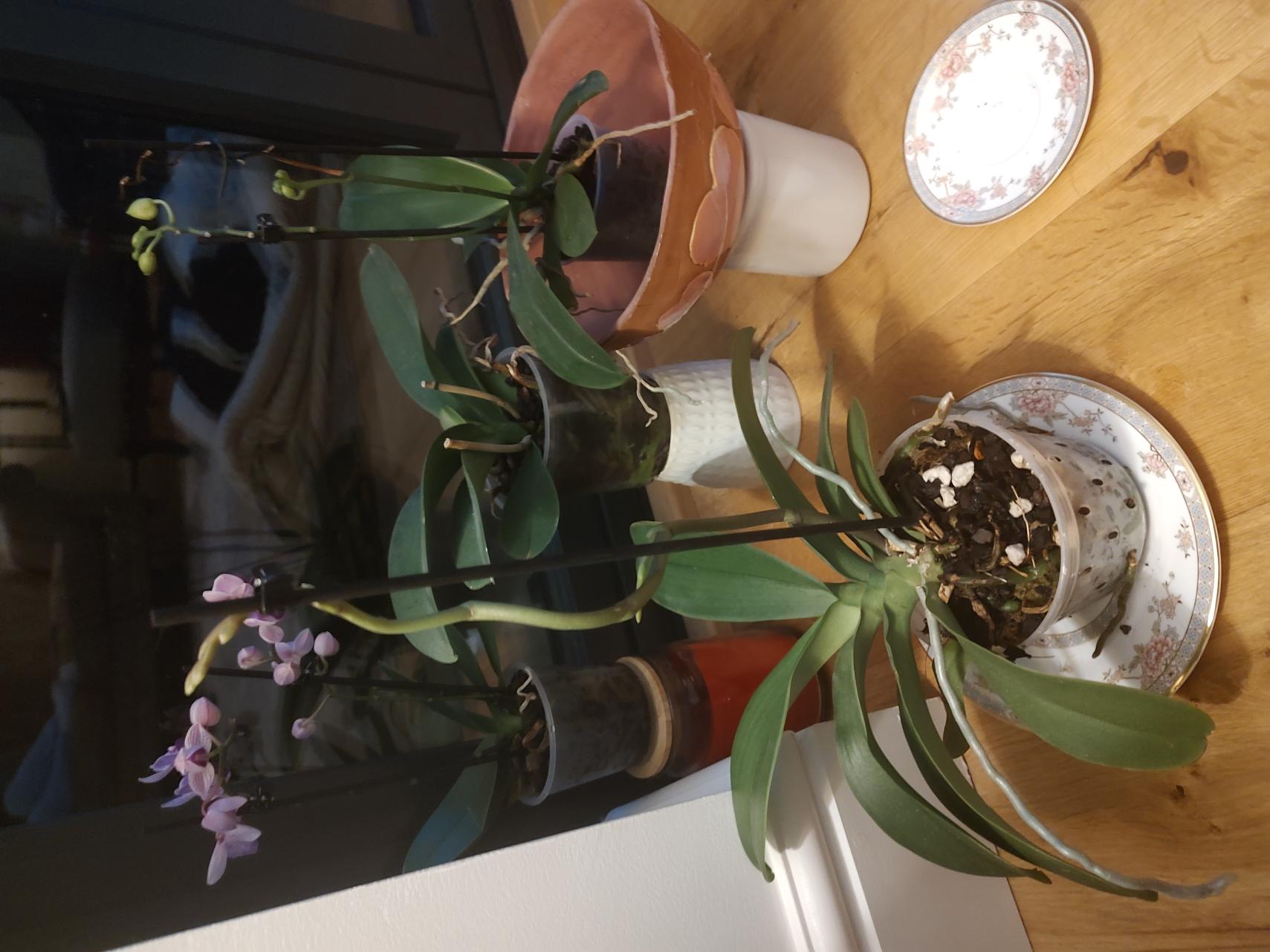 One tip is to make sure to not over water. Only water when the roots are silver. Give them lots of air/circulation. They need a temperature drop to bloom. They're phal orchids. Are you growing anything? |
