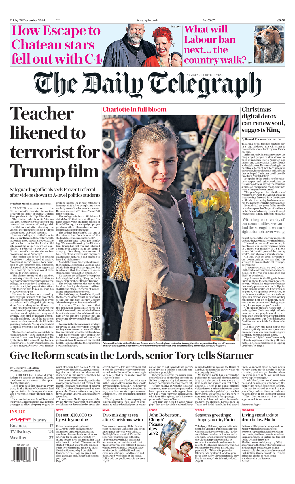 It is a shame, And they got viewers who would learn stuff. But never bully a Producer. If the Couple have their view going in the Daily Telegraph will not help this battle Very Top of this newspaper , today https://liveblog.digitalimages.sky/l...1a835acd64.png Last edited by arista; Today at 04:19 AM. |